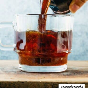 - Make the brewed coffee using your method of choice: Pour Over Coffee, French Press Coffee, or Aeropress Coffee.
