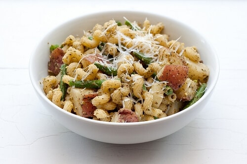 Red potatoes in pasta? Yes, and it’s very tasty too. Pasta and potatoes may sound like an unusual combination, but it’s actually a traditional way of serving pesto in northern Italy. In Genoa, pesto’s birthplace, Italians boil green beans, potatoes, and pasta (sometimes all in the same pot) and serve it with a pesto sauce. It's incredibly tasty and one of our favorite red potato recipes to date.
