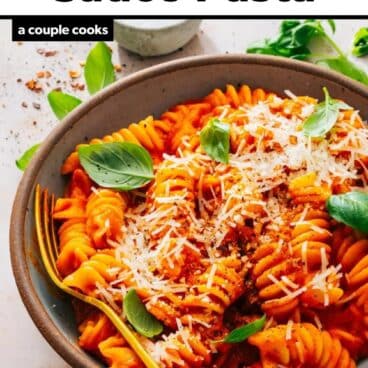 Craving a simple, cozy pasta? Try this Classic Red Sauce Pasta recipe! Like any great Italian recipe, it features simple ingredients simmered until they meld into a velvety tomato sauce. This one is based on a real Italian grandmother’s recipe (so you know it’s good!).