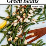 Sure you can make them steamed or sauteed…but have you tried Roasted Green Beans? Because they’re something special! I do love a crunchy, crisp tender bean, but I think my very favorite is oven roasted. A hot oven makes magic with just about every vegetable; here it turns green beans into a tender, caramelized version of themselves. Add a spritz of lemon juice and a sprinkle of toasted almonds, and it’s an easy yet gourmet side dish. Even our 3 year old loved these, and he’s not usually a green bean fan.