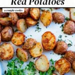This oven roasted potatoes recipe comes out crispy and seasoned to perfection! Red potatoes and fresh herbs make a classic pairing.