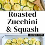 This roasted zucchini and squash is baked until tender with Italian herbs and Parmesan cheese! It’s the perfect summer side dish.