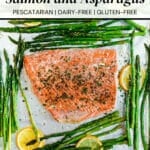 This salmon and asparagus recipe is gluten-free, dairy-free, and pescatarian.