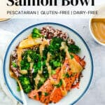 This salmon bowl recipe is the definition of a fast and easy dinner! Throw it all together with a killer sauce and prepare to be amazed.