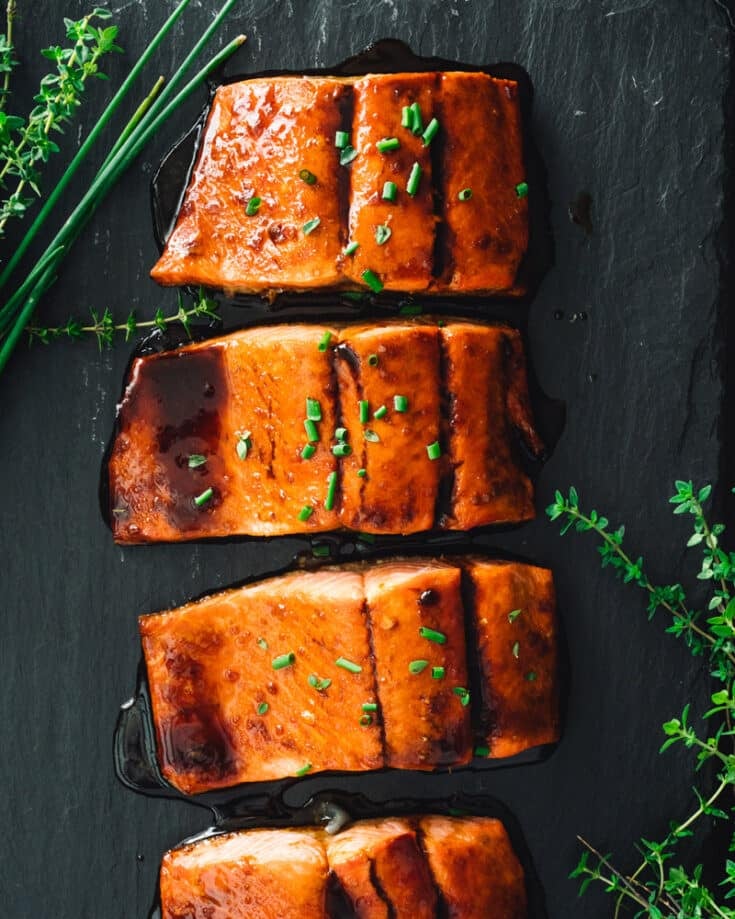 Want to step up your fish? Here’s an easy way: this flavor-popping marinaded salmon! It’s salty, tangy, garlicky, and a little sweet from brown sugar, resulting in a bite that’s positively bursting with flavor!