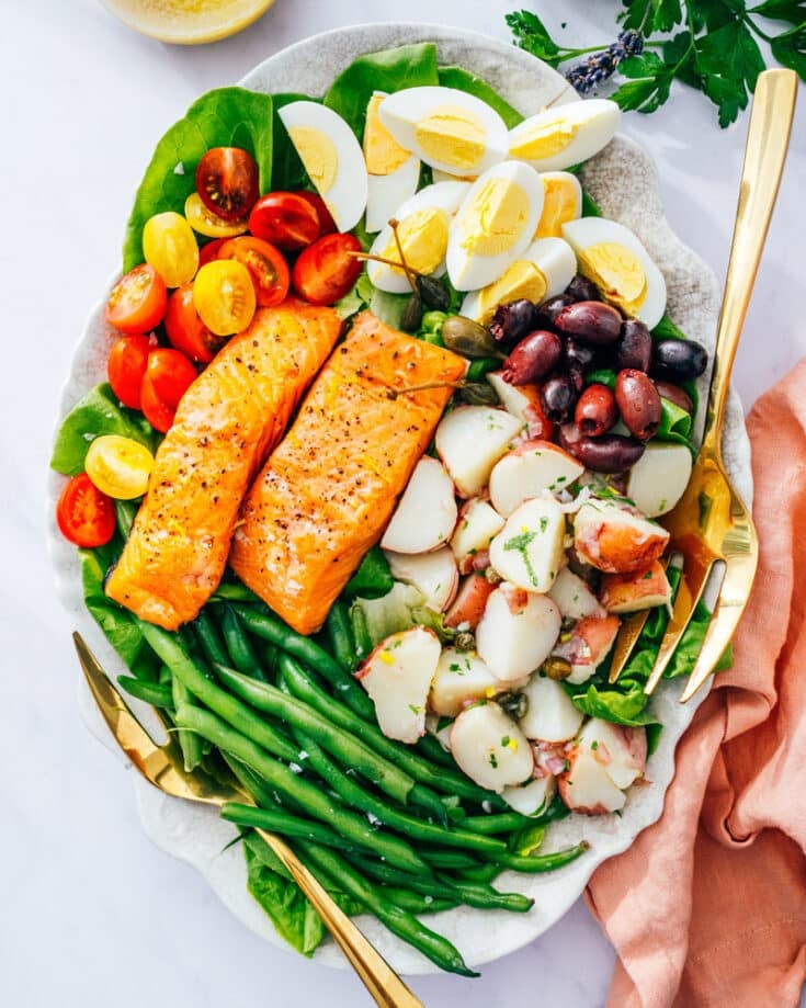 Here's a fun spin on the classic French Nicoise salad! Swap out the traditional tuna for salmon and you’ve got an impressive dinner. Use smoked or canned salmon to keep it super simple, or use whatever cooking method you like.