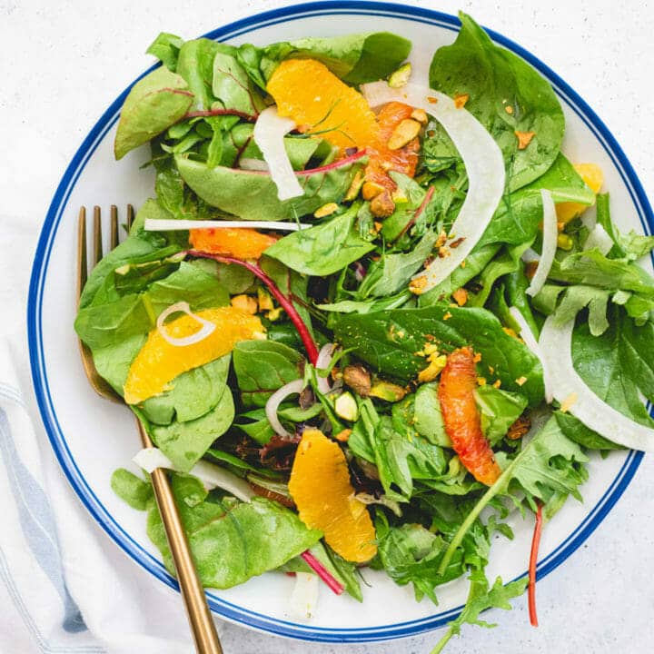 Ready to meet our (and your) new favorite salad? It features beautiful juicy oranges, with their vibrant color and citrusy flavor. Add to that a famous pairing: sliced raw fennel, which adds a subtle licorice essence.