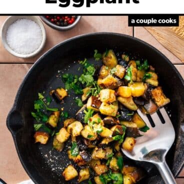 *If you’d like the eggplant to be even more tender, lower the heat and continue to cook a few more minutes, stirring often. The exact timing depends on the size of the eggplant pieces.