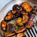 I mention balsamic as an optional addition to your onions, but it’s become a must in my kitchen for these and roasted onions. Add 1 tablespoon of balsamic vinegar about 5 minutes into the sauté. It evaporates, but leaves behind a tangy, sweet essence. You can also add a splash of red wine to infuse complexity into the flavor.