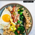 - Fried egg: The egg is required in our minds! It makes a lovely sauce to cover the bowl, and adds protein. But want to make vegan savory oatmeal? Skip it and see below for more details.