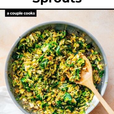 Got those shaved Brussels sprouts? Throw them in a hot pan and sauté for about 4 minutes, then add minced garlic, shallot and Parmesan and cook about 3 minutes more. It adds the best savory nuance to the the feathery pieces! But there are lots of other ideas for flavoring. Here are some other options: