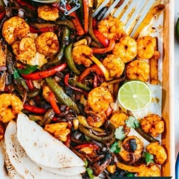 *If you have homemade or purchased Fajita Seasoning, you can substitute it for the spices. For the veggies, use 2 tablespoons fajita seasoning and reduce the kosher salt to 1 teaspoon. For the shrimp, use 1 tablespoon fajita seasoning and add ¼ teaspoon kosher salt.