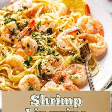 Plump, succulent shrimp are bathed in a vibrant lemon butter sauce that perfectly complements the al dente linguine. This one always disappears very quickly over here—both of our kids gobble it up!