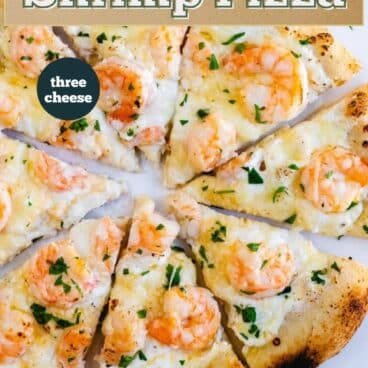 This garlicky shrimp pizza recipe combines buttery seafood with three Italian cheeses for a pizzeria-worthy pie you can make at home. It’s like creamy shrimp alfredo on an unforgettable pizza crust!
