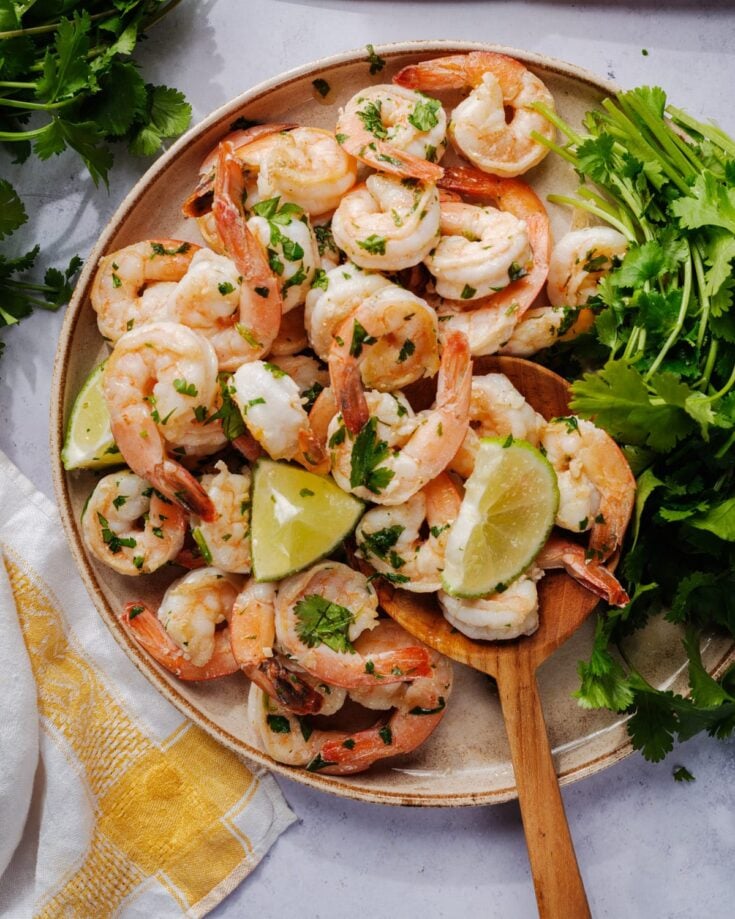 If you’re looking for quick and healthy dinners, shrimp recipes are one of the best places to look! As a cookbook author who eats the Mediterranean diet, I often make shrimp for dinner because it’s quick and my whole family loves it.