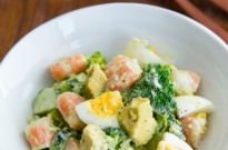 I like this refreshing salad should be served slightly chilled, but you can serve it at room temperature as well. Don’t be afraid to add some salt to season the salad instead of adding more mayonnaise. Without salt, the taste can be a bit bland, and salt brings all the flavors together nicely. The most interesting part of this salad for me, as I mentioned before, is the texture. The crisp cucumber with the soft texture of chopped eggs and avocado, mixed with succulent shrimp and tasty broccoli, goes with many types of meals. I hope you enjoy this salad as much as my family does.