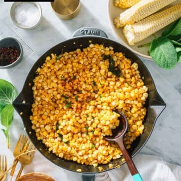 This skillet corn recipe is vegetarian and gluten-free. For dairy-free, plant-based and vegan, use vegan butter.