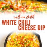 With the turn to cooler weather and comfort food cravings, we’ve got you covered with this skillet Mexican cheese dip recipe! Check out that gooey, melty cheese, right? We created this Mexican cheese dip recipe especially for entertaining. It’s perfect for parties: tailgating, a game day gathering, or a party table full of easy finger food recipes for a crowd. It’s a play on white chili, using white beans, mild green chiles, corn, and a gooey mess of Mexican cheeses (sans the typical chicken so it’s vegetarian!).
