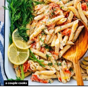 And that’s it! We hope you love this smoked salmon pasta as much as we do. It disappeared very quickly at a dinner we made for my parents recently!