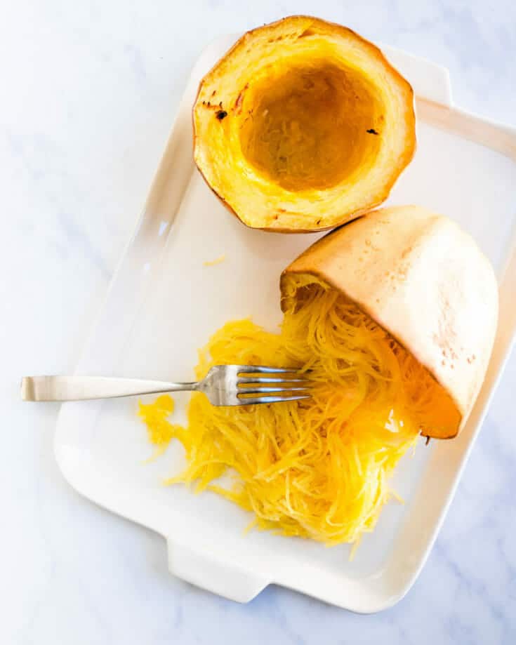 - Cook the spaghetti squash: Make Roasted Spaghetti Squash or Instant Pot Spaghetti Squash.