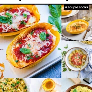 An incredibly delicious spaghetti squash recipe? Spaghetti squash spaghetti! Roast up the squash (or cook it in the Instant Pot!). Then saute it with garlic and herbs to up the Italian flavors. To serve, douse it in your very favorite marinara sauce! Add a generous sprinkling of Parmesan cheese (or vegan Parm) and it's a tasty side dish! To make it filling enough for a main dish, add lentils, meat, or vegan meatballs or another side of hearty plant based protein.