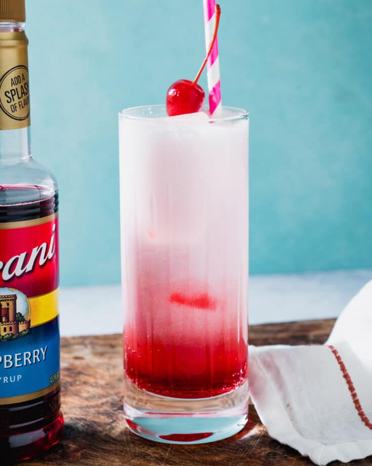 Here’s a sparkling drink that’s festive and just plain fun: the Italian Soda, aka Italian Cream Soda! This American beverage has been inspiring drinkers for decades, and for good reason. The combination of bubbly club soda, fruity syrup and silky cream is simply heavenly. These sweet drinks are over the top impressive: especially if you serve them with colorful straws and a cocktail cherry.