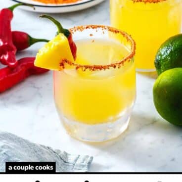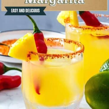 This spicy pineapple margarita recipe is the perfect combination of sweet and spicy, made with fresh pineapple juice, tequila, lime juice, and a touch of jalapeno pepper!
