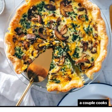 This spinach mushroom quiche makes a delicious brunch or a light dinner! The buttery, flaky crust is packed with savory mushrooms and a cheesy custard.