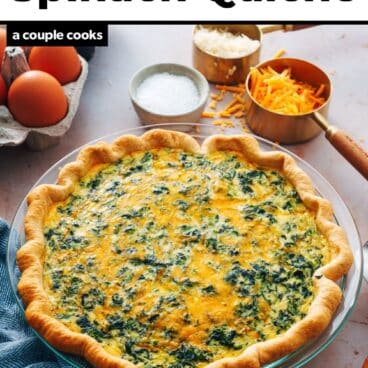 This spinach quiche recipe has a flaky pastry crust and a savory, cheesy interior! It’s perfect for brunch or a light dinner.