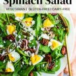 This spinach salad is absolutely classic with hard boiled eggs, as it harkens back to that 1970’s bacon and egg salad. And, they add a great amount of protein! One egg has 7 grams of protein. This is specifically helpful when you are looking for a side dish with protein to round out a vegetarian dinner.