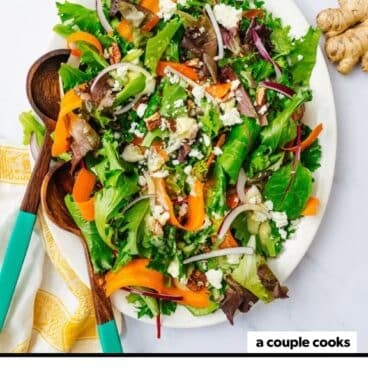 This spring mix salad is a fast and easy recipe starring a mix of baby greens! Top with veggies and a zingy homemade salad dressing.