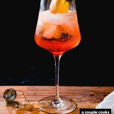 Here’s a classy classic Italian cocktail everyone should know: the Spritz Veneziano! When made with Aperol, it’s popularly known with a different name in the US: the Aperol Spritz! Make this refreshing cocktail the classic Italian way and it’s pure perfection: bubbly and lightly sweet, with a bitter finish. Garnishing with olives brings a briny contrast to the sweet bubbles. It’s ideal in any season: and one of our favorite great classic cocktails.