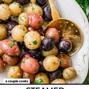 These simple steamed potatoes are a go-to side dish when you’re not sure what to make! It’s loads quicker than firing up the oven, and delicious every time. Here are a few more potato side dishes I love: