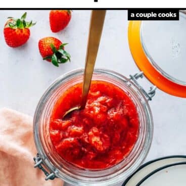 Why we love this recipe: This strawberry compote is outrageously tangy and bursting with sweet berry flavor! Alex and I love whipping this up as a versatile topping for ice cream, pancakes, waffles, or oatmeal. A compote is a great way to use fruit that’s almost overripe, but there’s no need to wait for that for this recipe. Anytime is the perfect excuse!