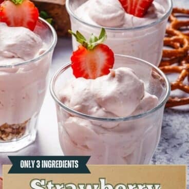 This strawberry mousse is delicious served up in little jars with crushed pretzels or graham crackers. Or if you like, you can make double the recipe and pour it into a pretzel crust or graham cracker crust! Make sure to refrigerate it for a few hours before serving to set the mousse to a thicker texture.
