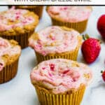 Everyone will want seconds of this delicious strawberry muffins recipe! It’s got a tender fluffy crumb and a cream cheese swirl topping.
