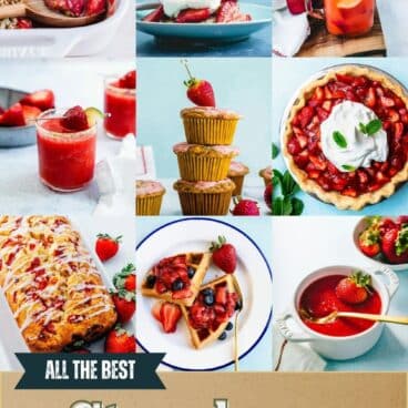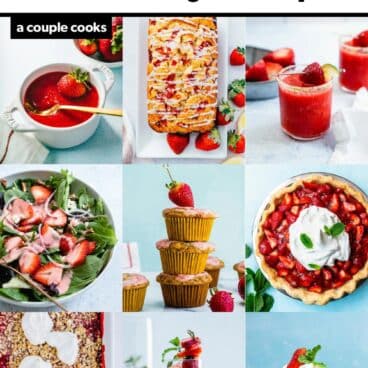 Strawberries are best in the summer months in the US, or check for local berries from a farmers market. My first time biting into a local strawberry here in Indiana was transcendental. It was a bite of the purest pure strawberry flavor I had ever tasted. These strawberry recipes taste great with any strawberries, but they’re at their best with sweet, ripe local strawberries.