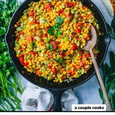 This succotash recipe is vegetarian, vegan, plant-based, dairy-free, and gluten-free.