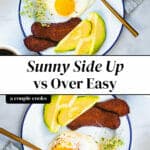 Here’s how to make sunny side up vs over easy eggs! There’s a slight difference between the two: here’s how to make each method to perfection.