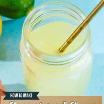 Want to whip up lots of cocktails for a party? Try this homemade sweet and sour mix! The lemon lime flavor is so bright and zingy, you can’t help but raise your eyebrows in admiration after one sip. It makes a big batch that you can use it in drinks and cocktails of all kinds.