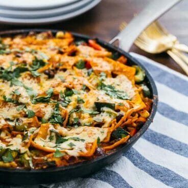 Here’s an incredible vegetarian recipe that’s impressive every time: these Sweet Potato and Black Bean Enchiladas! This recipe is one we originally published in 2012. And guess what? It’s stood the test of time and is a favorite of ours to this day. Tender sweet potatoes are the perfect contrast to savory black beans and tangy salsa verde. Top it off with Colby cheese, it’s the best gooey comfort food around. This one will please everyone: we guarantee it. Here we’ve made a few tweaks to the recipe to make it even better than ever!
