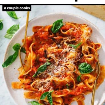Got tagliatelle? This long noodle is delightfully chewy and one of our favorites for a satisfying pasta dinner. It’s slightly wider than linguine, making it a more substantial bite of doughy pasta. Covered in a tangy homemade marinara sauce and topped with fresh basil and Parmesan, it’s a stunning meal with little effort. We created this using a bundle of fresh pasta we had on hand and our family were big fans!