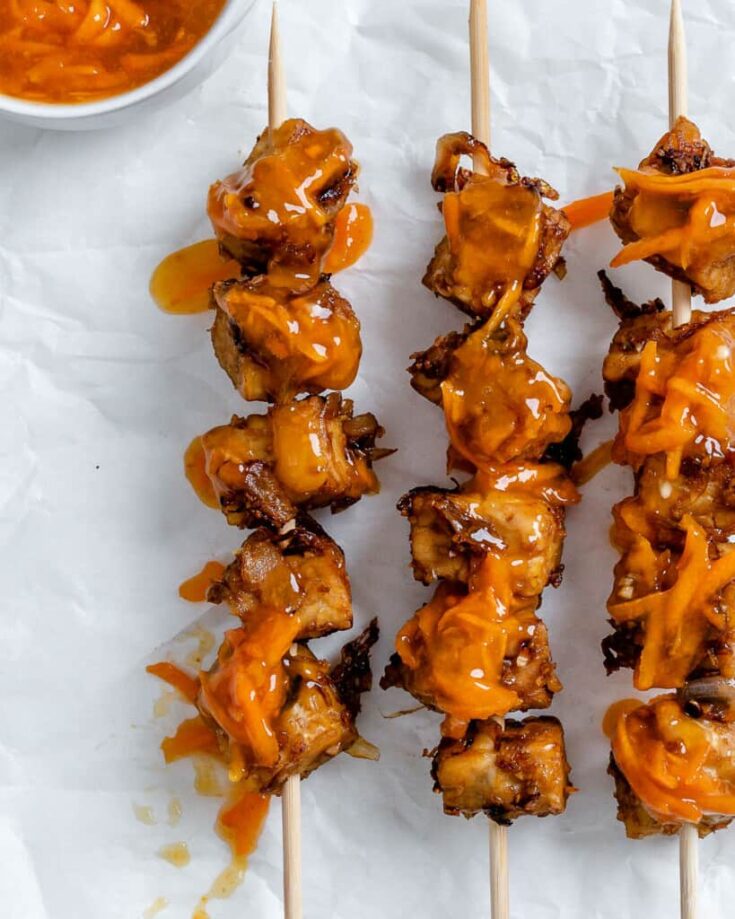 This vegan kabobs with marinated tempeh recipe packs a solid punch of citrusy goodness! This sweet and savory dish is sure to be a hit for weeknight or weekend meals. via Plant Based on a Budget