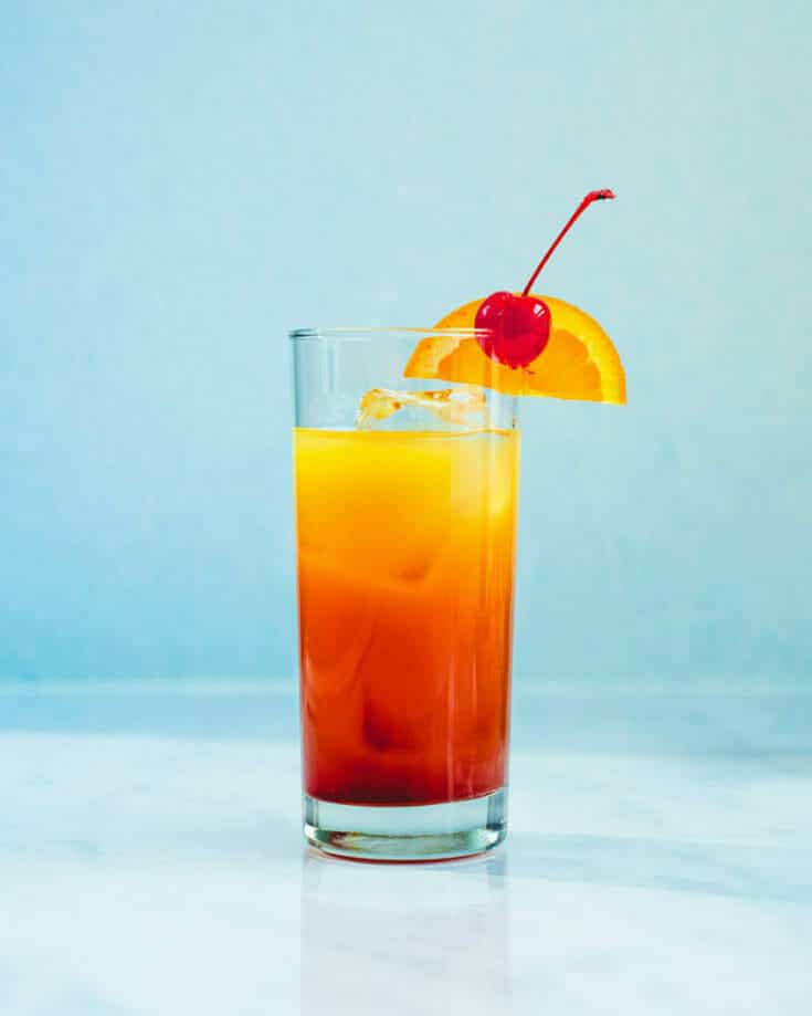 Technique tip: The key to getting that perfect sunrise effect is to pour the grenadine slowly down the inside of the glass. Don't stir afterward—let the density of the syrup create those gorgeous layers naturally.