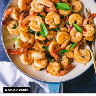 Got Thai basil? This fresh herb brings a touch of aromatic anise flavor to anything it touches. It’s stellar in curries and fried rice, and but one of our favorite ways to use it? This Thai Basil Shrimp Stir Fry! It’s flavored with garlic, fresh ginger and soy sauce, with a light black licorice nuance on the finish. It tastes totally gourmet: whipped up in just a few minutes on the stovetop. Inspired by a local restaurant (hi Bodhi!), it’s one of our favorite quick weeknight meals to date.