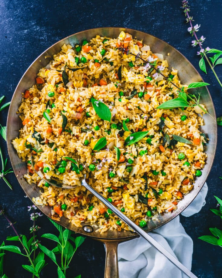 Thai basil fried rice is a delicious way to use this fragrant herb! Thai basil infuses a delicate anise flavor into this satisfying dish.
