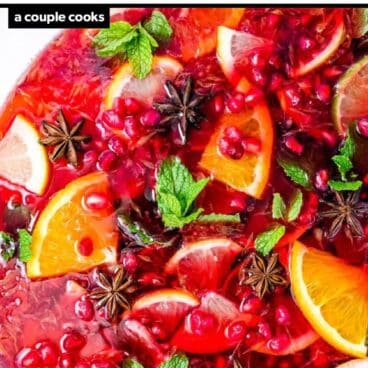 This Thanksgiving punch is vibrant and tastes irresistibly light and fruity! Pomegranate juice and citrus make magic in this drink that’s perfect for serving a crowd.