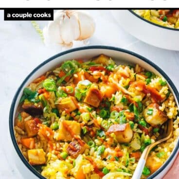 This tofu fried rice recipe is one of our top recipes with tofu! Here are a few more tofu recipes you’ll love: