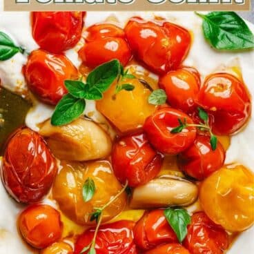 Turn tomatoes into gold with our tomato confit recipe, which tastes like a burst of summer sunshine! Slow roasting cherry tomatoes in olive oil turns them rich and concentrated, with a jammy, melt-in-your-mouth texture and sweet caramelized flavor.