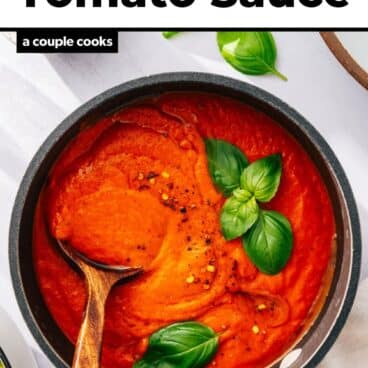 Sure, you can buy it in a jar. But homemade tomato sauce is superior every time! This tomato sauce recipe is our kitchen staple: it comes out velvety and tangy, bright from the tomatoes and smooth from the olive oil. Based on an Italian grandmother’s recipe, this one uses simple ingredients to make culinary magic. Swirl it into pasta, spread it on pizza, or use it as a marinara dipping sauce and you’ll swoon over the flavor. This one is tops in our hearts because of the velvety texture it imparts on all it touches.